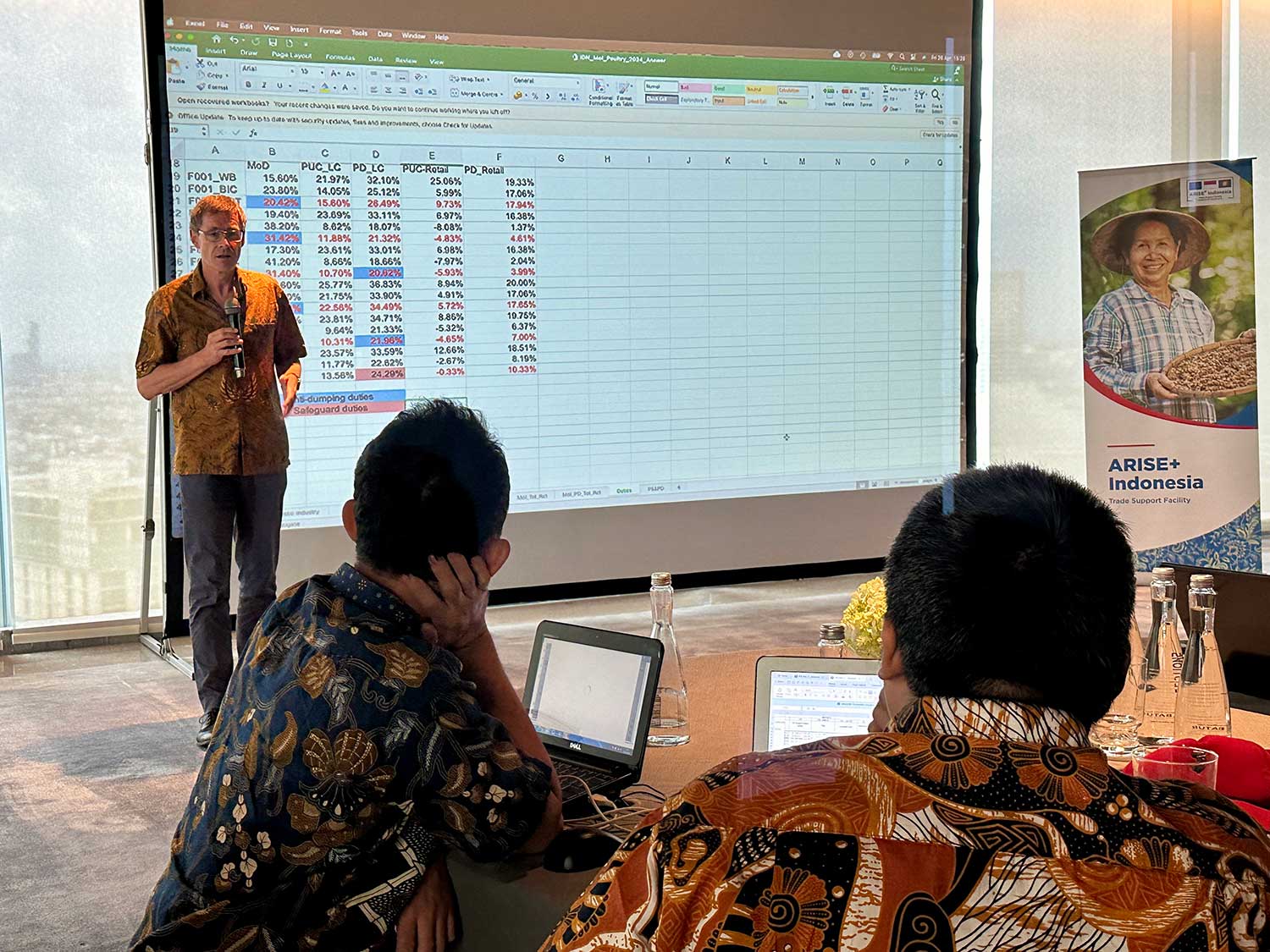 The Directorate of Trade Defense (DPP) of the Ministry of Trade, in collaboration with ARISE+ Indonesia, organised a three-day workshop for DPP officials. The workshop's objective was to develop a tool for determining the margin of dumping. This tool will be instrumental in formulating defence positions during anti-dumping investigations against products exported from Indonesia.