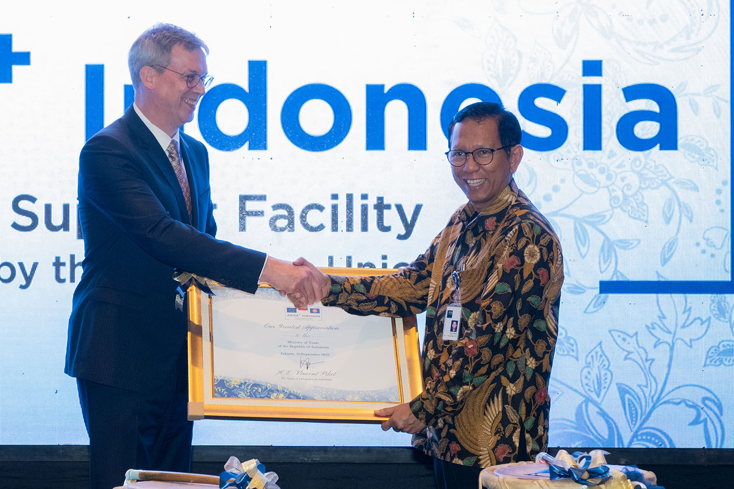 Uni Eropa (EU) memberikan hibah dana senilai 15 juta euro atau sekitar Rp232 miliar kepada Indonesia, melalui program ASEAN Regional Integration Support – Indonesia Trade Support Facility (ARISE+ Indonesia).